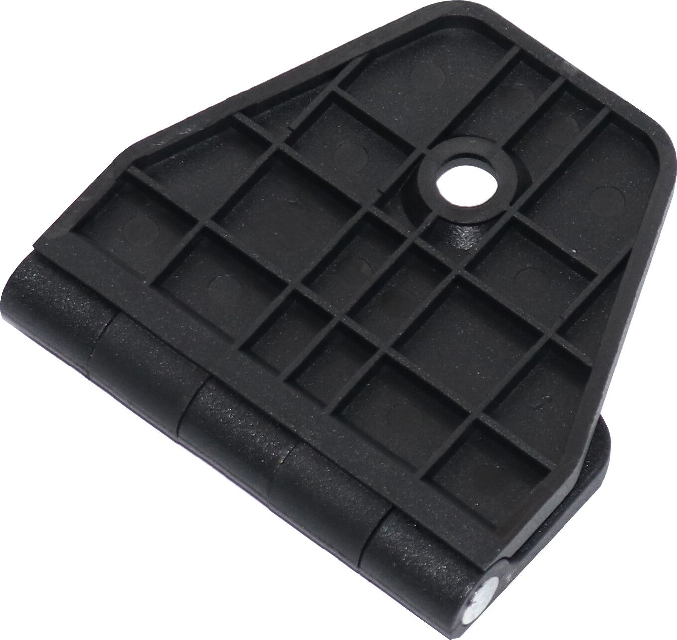105mm (L) x 80mm (W) x 6mm (D). 180º Opening. ø8mm Zinc plated steel pin. 6mm Black nylon polymide construction. Robust design. 4 x ø9.0mm Countersunk fixing holes.