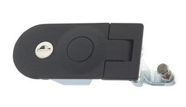 Black Powder Coated. Adjustable grip length: 29-44mm (Grip range can be made smaller with a longer M6 bolt). Supplied with 2 keys. Face measurements: 110mm x 50mm. Cut out required: 90 x 35mm. Fully sealed. Round push button operation. Minimal front face protrusion.