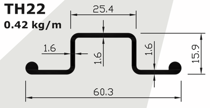 Top hat style. 250cm (L) x 6.3cm (W) x 16mm (H).