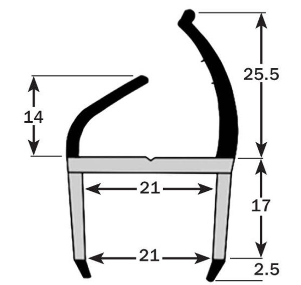 5m (L). Comes supplied as 2 x 2.5m lengths. White PVC rigid carrier with black flexible lips. Fits over 21mm. Ideal for a tilt cab cut through seal, etc.