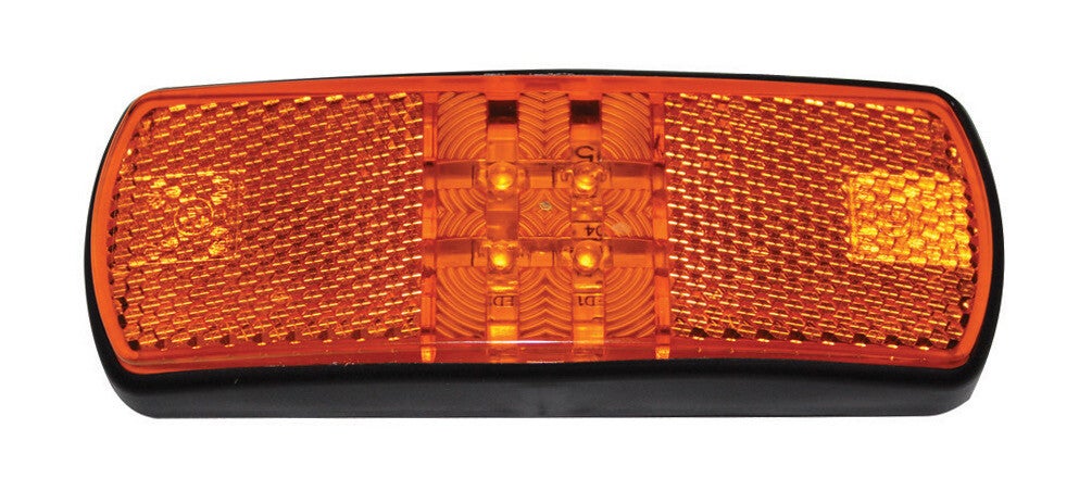 Dual voltage: 12/24 volt. 120mm (W) x 45mm (H) x 16.5mm (D). Supplied with 500mm cable. Surface mounted. No visible fixings/flush bracket. IP67 rated. Integral Reflectors.